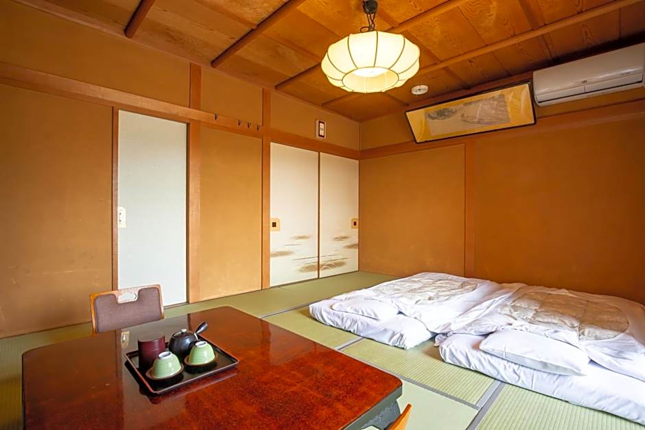 This quadruple room provides a shared bathroom, and yukata. The quadruple room offers air conditioning, tatami, a private entrance, a tea and coffee maker, as well as a flat-screen TV. The unit has 3 futons.
